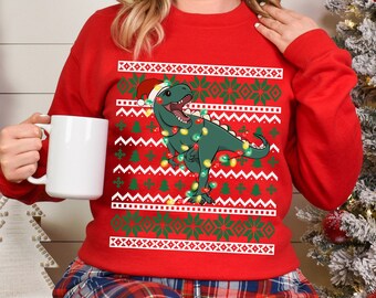 Ugly Christmas Sweater Dinosaur Etsy De